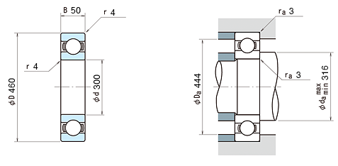 | Радиус монтажной фаски подшипника | r | 4 | мм |