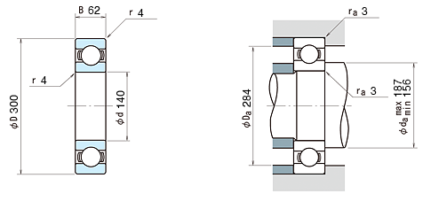 | Радиус монтажной фаски подшипника | r | 4 | мм |