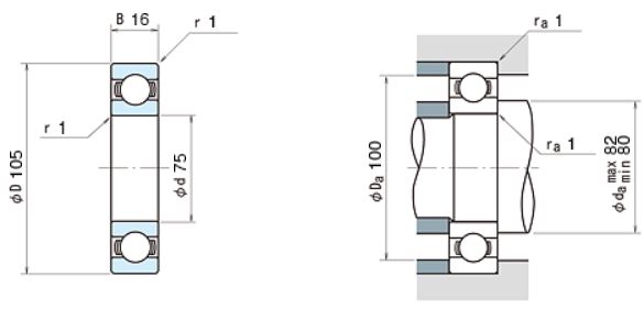 | Радиус монтажной фаски подшипника | r | 1 | мм |