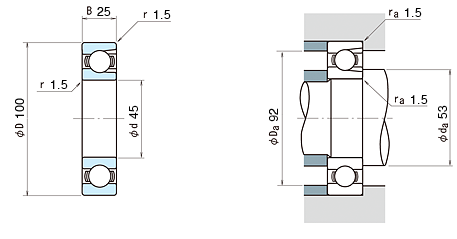 | Радиус монтажной фаски подшипника | r | 1,5 | мм |