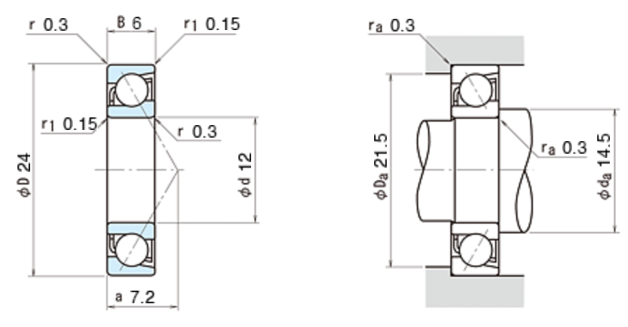 | Радиус монтажной фаски подшипника | r | 0,15 | мм |
