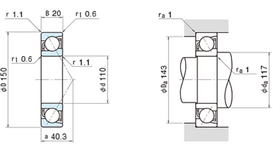 Подшипники шариковые радиально-упорные однорядные неразъемные со скосом на наружном и внутреннем кольцах с углом контакта α=40º