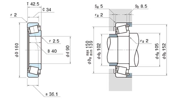 | Радиус монтажной фаски подшипника | r | 2 | мм |