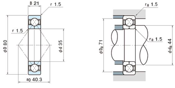 Подшипники шариковые радиально-упорные однорядные неразъемные со скосом на наружном и внутреннем кольцах с углом контакта α=40º