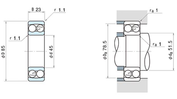 | Радиус монтажной фаски подшипника | r | 1,1 | мм |