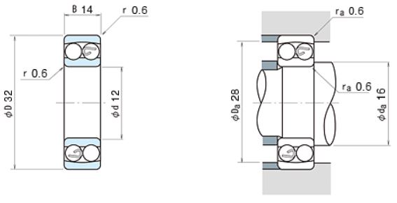 | Радиус монтажной фаски подшипника | r | 0,6 | мм |