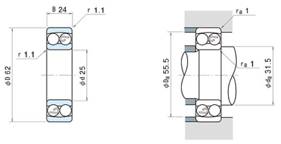 | Радиус монтажной фаски подшипника | r | 1,1 | мм |