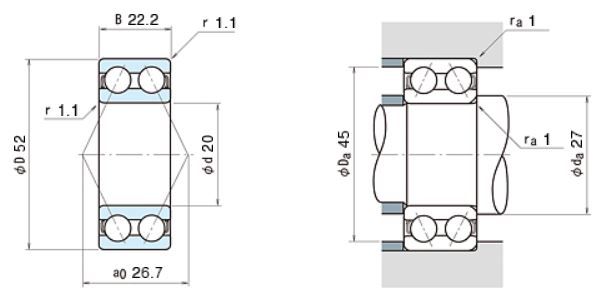 Подшипники шариковые радиально-упорные однорядные неразъемные со скосом на наружном и внутреннем кольцах с углом контакта α=40º