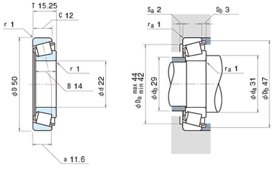 | Радиус монтажной фаски подшипника | r | 1 | мм |