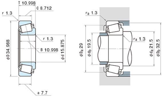 | Радиус монтажной фаски подшипника | r | 1.3 | мм |