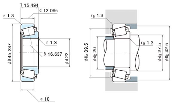 | Радиус монтажной фаски подшипника | r | 1.3/1.3 | мм |