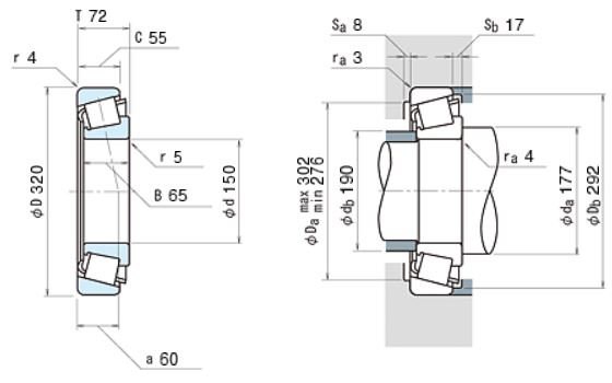 | Внутренний диаметр подшипника | d | 150 | мм |