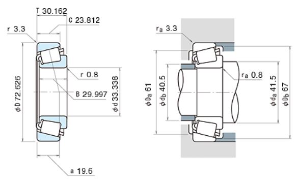 | Радиус монтажной фаски подшипника | r | 3.3/0.8 | мм |