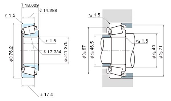 | Радиус монтажной фаски подшипника | r | 1.5/1.5 | мм |