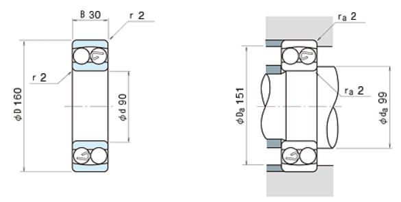 | Радиус монтажной фаски подшипника | r | 2 | мм |
