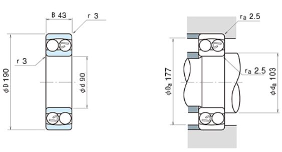 Подшипники шариковые радиально-упорные однорядные неразъемные со скосом на наружном и внутреннем кольцах с углом контакта α=40º