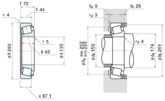 | Радиус монтажной фаски подшипника | r | 4/5 | мм |